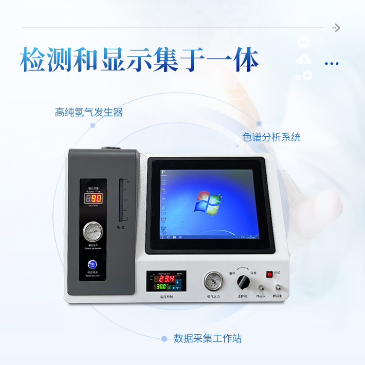 1、将高纯氢气发生器,工业级电脑、分析仪、色谱工作站完美结合,检测和显示于一体,通过一次进样可以完成气体中含量的精确分析,可直接打印分析报告, 只需一台仪器就可完成整个分析,检测过程更简单化。